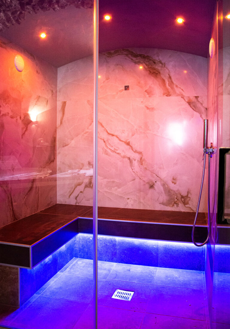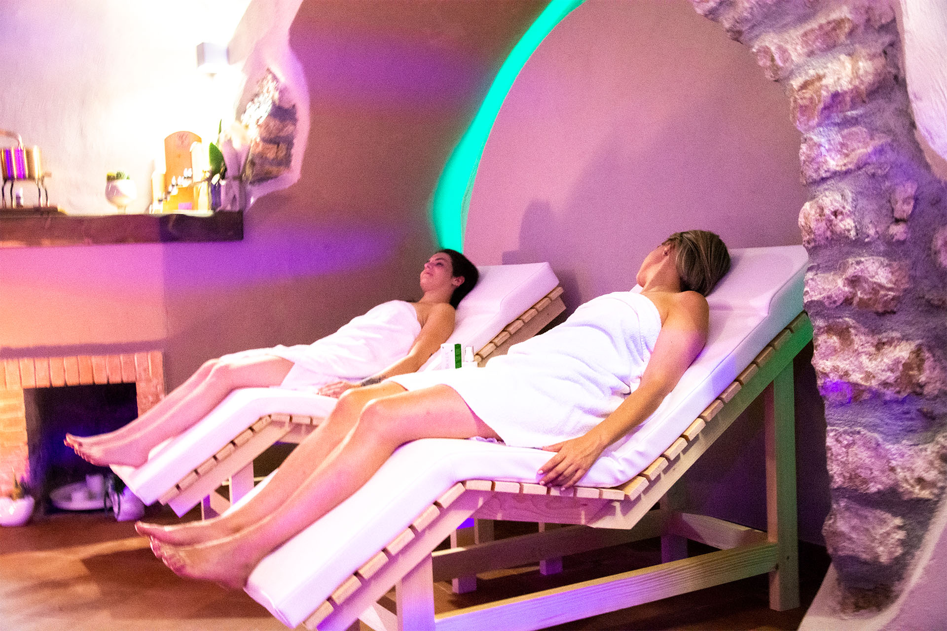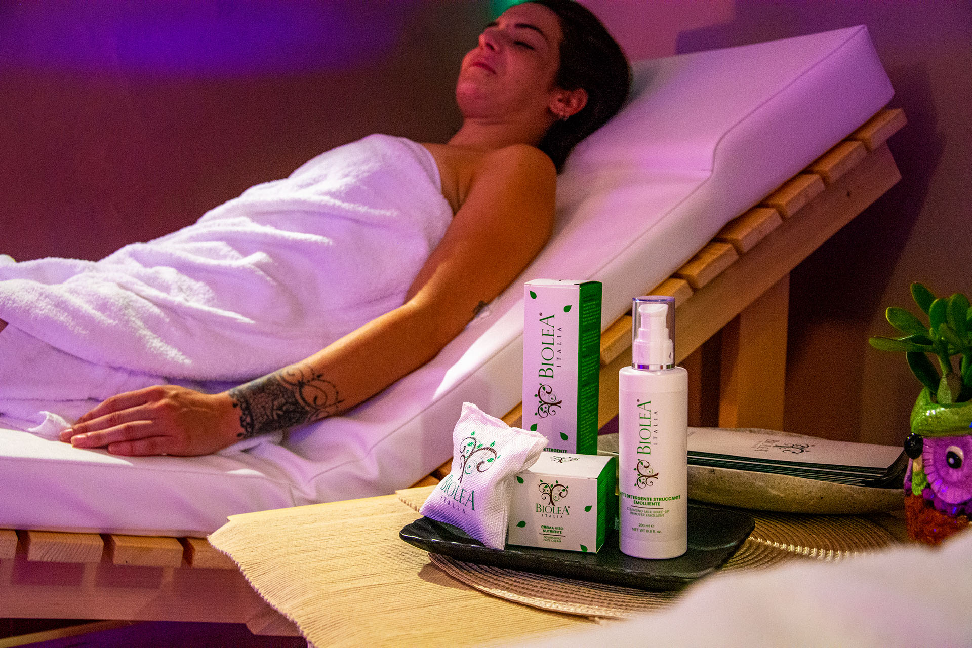 comprende kit di benvenuto (teli - da restituire - , ciabatte, uso della doccia, uso del phon, uso dell'area relax - chaise longue - aria condizionata (estate) - riscaldamento (inverno) aperitivo di benvenuto; cromoterapia, aromaterapia, accesso all'area shop, pranzo tipico; visita guidata con accompagnatore; visita in cantina e degustazione con tagliere.